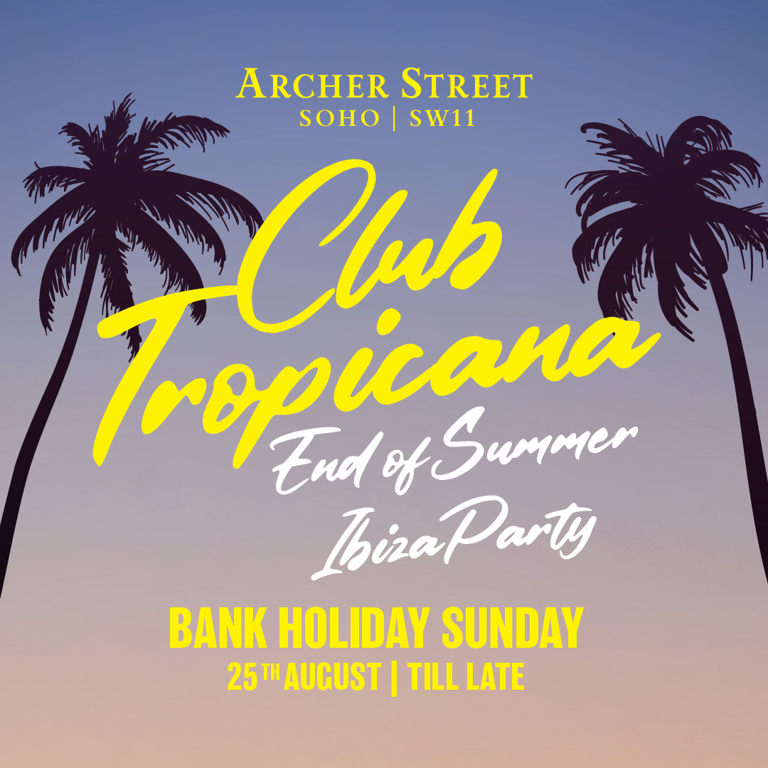 Join us this Bank Holiday Sunday at Archer Street Soho for the ultimate summer send-off party inspired by Pikes in Ibiza! 🍍🌺🦩🥥🍉🍹