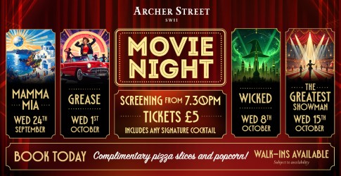 Watch your favourite musicals on the big screen, brought to life by live performances from the Archer Street team. You won’t just watch the film – you’ll be part of the show.