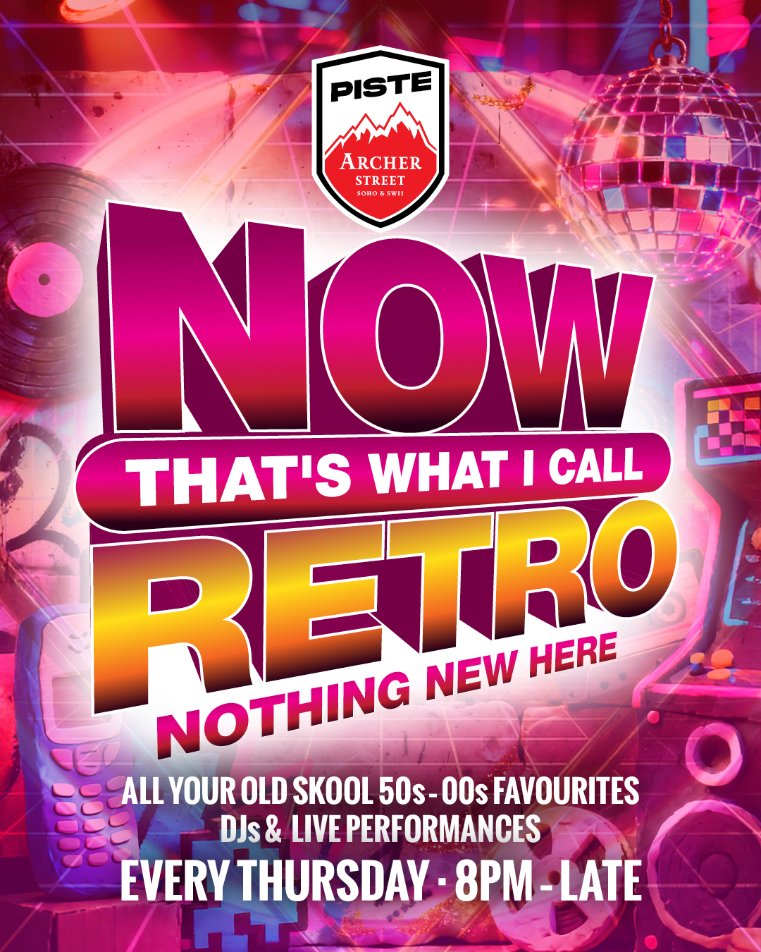 Big songs. Bigger sing-alongs. Thursday is pure nostalgia at Archer Street. Now That’s What I Call Retro is your ultimate throwback night, spinning nothing but the greatest hits from the 1950s right through to the noughties. From rock ’n’ roll classics and disco anthems to 90s bangers and early 00s floor-fillers, every track is a guaranteed sing-at-the-top-of-your-lungs moment. No current chart music. Just exclusive retro DJ sets packed with wall-to-wall throwbacks. If you know the words, we’re playing it.