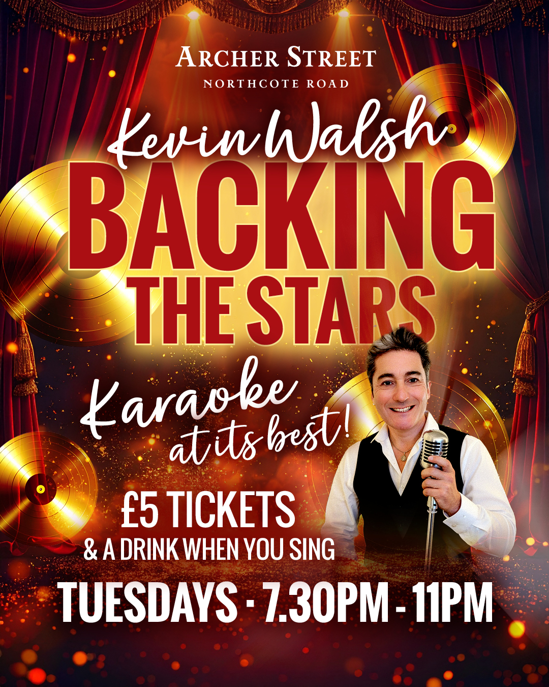 Join us every Tuesday at our Northcote Road venue for Backing The Stars hosted by the brilliant Kevin Walsh. Step up, take the mic, and sing your heart out with full backing from a live pro. Even better? Perform and enjoy a complimentary drink on us. From power ballads to guilty pleasures, this is karaoke at its absolute best - high energy, great vibes, and a crowd that’s always up for it. Tuesdays | 7:30PM – 11PM £5 entry. Don’t miss your chance to be the star of the show ✨
